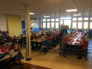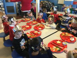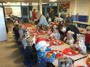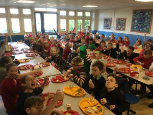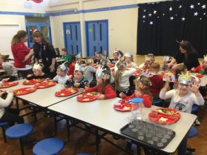 It’s beginning to look a lot like Christmas! The whole school was excited to have a delicious Christmas lunch on Friday. The hall was filled with festive spirit. The children entertained each other by singing Christmas songs while queuing for their Christmas lunch.