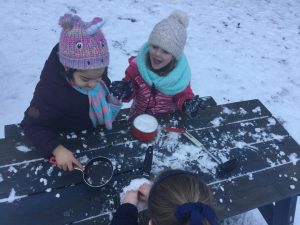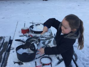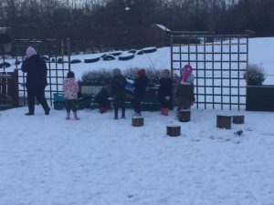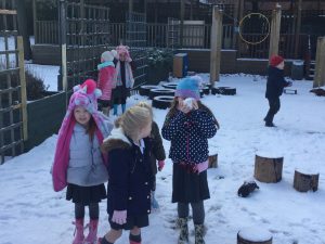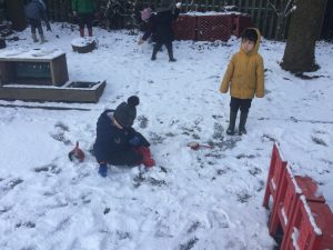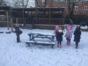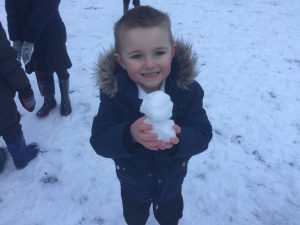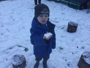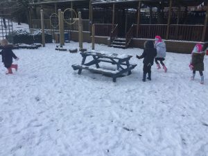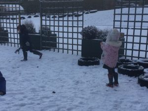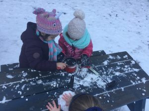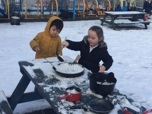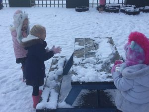 The children in Dragonflies loved playing and investigating in the snow last week. They created super snow sculptures, opened a snow cafe and threw snowballs at targets.