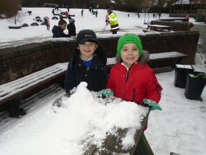 Golden time today took place outside in the snow. In KS1 we had loads of fun running around, building snowmen and even making some snow sculptures.