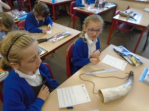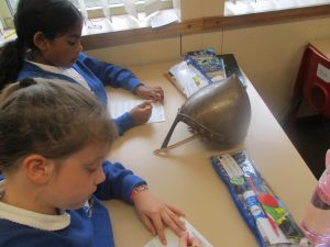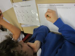 As part of our ‘Vicious Vikings’ topic, Bluebells, Tulips and Snowdrops were lucky enough to be visited by three teachers from Durham University. Our guests shared their knowledge and expertise in a variety of fun activities which included making runic headstones, handling Viking weaponry and playing Old Norse word games. Of course, we also got to try on some Viking clothes!
