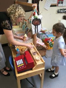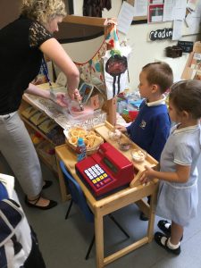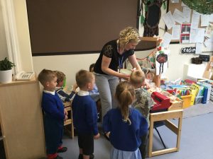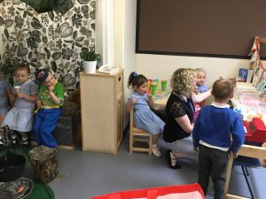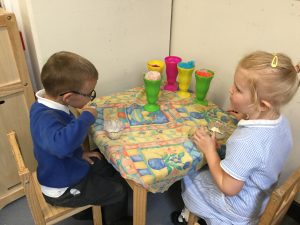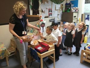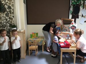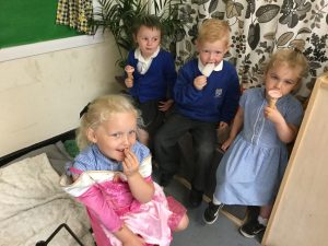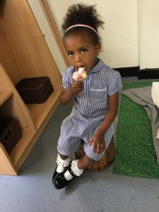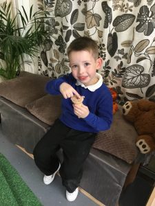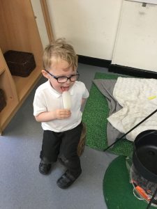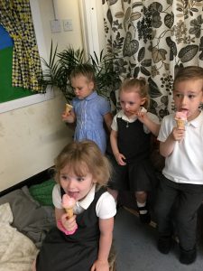 We have had a super day today! We used our ice cream role play area to order and eat ‘real’ ice cream! There were four flavours to choose from, different toppings and chocolate sauce. There was also ice lollies for anyone who didn’t want ice cream!