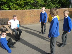 This week during our GaP Buster sessions we were looking at verbs – what they are; how to find them in writing and what they do. As the title says, we were acting verbs, so we decided to go outside and that meant…really acting out the verbs!