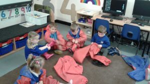 This week we have focused on the book, Picasso’s Trousers. We discovered that Picasso was an artist who enjoyed painting portraits so we painted some self-portraits. We used a mirror to examine our features and used appropriate colours.