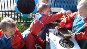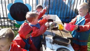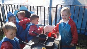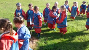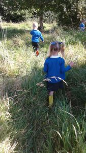 We made the most of today’s beautiful weather and spent the day exploring our school grounds and using the mud kitchen. While exploring the ‘top field’ we discovered an abundance of raspberries and blackberries which we picked for snack.