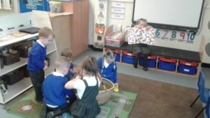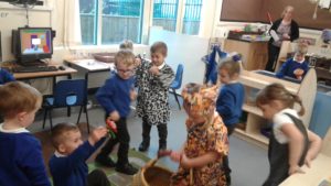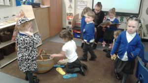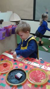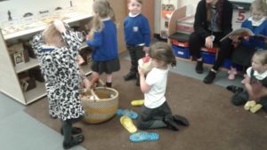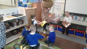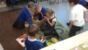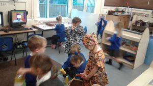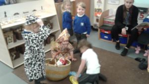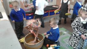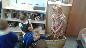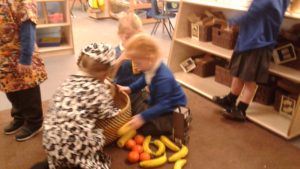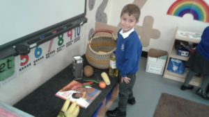 This week in nursery, we have been focusing on the story, Baby Goes to Market by Atinuke and Angela. The children have retold the story to each other using drama and props, produced some African patterns both on the computer and by printing and they have painted the key items from the story.