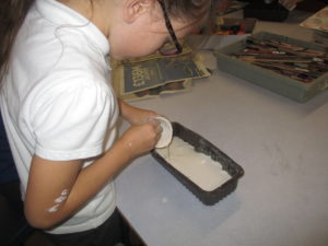 To say that this was a messy day was an understatement! Making fossils out of clay and plaster was never going to be clean and tidy though. However, it was great fun and they look fantastic! Huge apologies to our cleaning staff though!