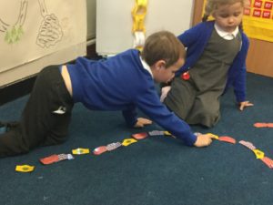 The children in the Dragonflies have loved making pattern using the pants from the story Aliens love underpants. The children were keen to show their talents making some very tricky patterns.