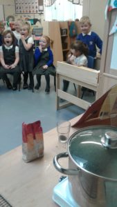 This week we are focusing on the book, Bear Snores On by Jane Chapman. We are bringing the story to life all week and today we ‘popped white corn and brewed black tea’! The children thoroughly enjoyed listening to the corn pop, watching it jump from the pan and tasting it! They were amazing actors and actresses during our drama sessions as they were very accurate and really entertaining!