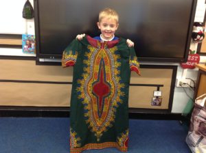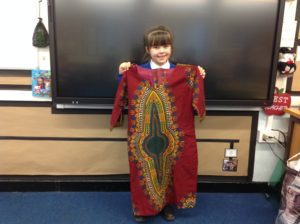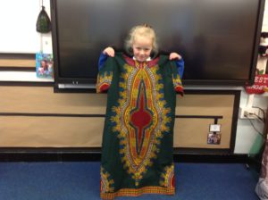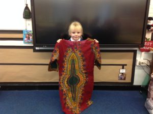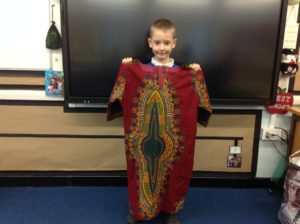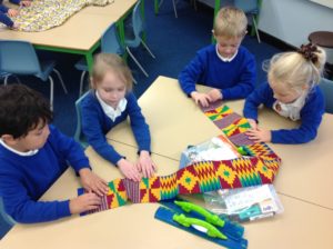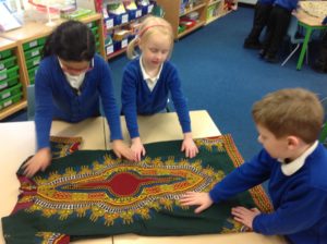 Linking with our topic of Winter, the children have been learning lots of interesting facts and information about Ghana and comparing it with Windy Nook. This week the children had a fantastic opportunity to actually have hands on experience of holding, feeling and discussing materials and dresses that were made in Ghana. The children looked at the patterns and compared them with their school uniform of Windy Nook. They soon realised how different our uniform is to the bright and colourful patterns and designs of the dresses and material from Ghana.