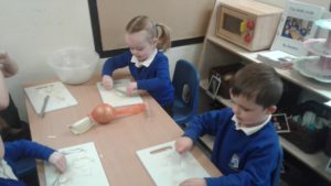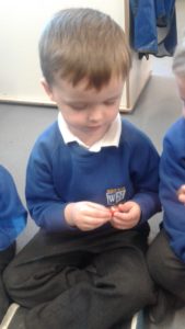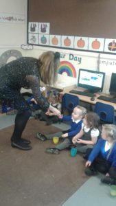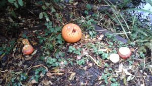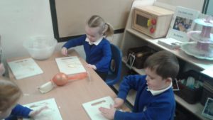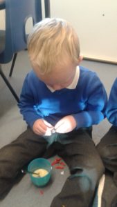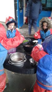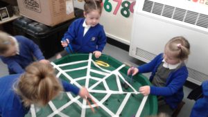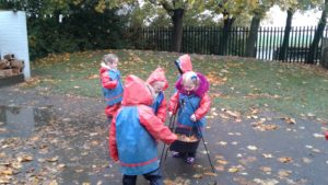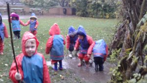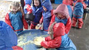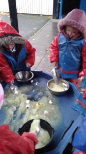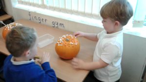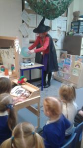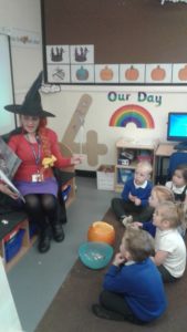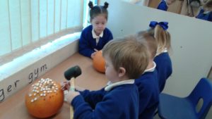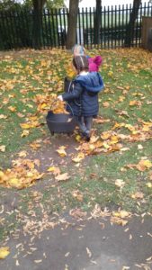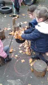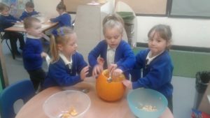 Another busy week in nursery! We have focused on the book, Room on the Broom by Julia Donaldson and acted out the story in various ways throughout the week. On Wednesday, we scooped the inside of pumpkins and made pumpkin soup and roasted pumpkin seeds, which we ate during our Halloween feast. During our outdoor session today we put the remains of our pumpkins in the pond area, in view of the outdoor camera. We are going to check the footage in the near future to see if any animals have had a nibble!