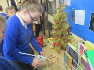 For UKS2’s DT topic this term, children have been working on researching, designing and making Fairground rides including working electrical circuits, motors and pulleys. This week, they have worked hard on the manufacturing process: creating a solid wooden framework, measuring, cutting and securing dowel and using hot glue guns to hold it all together. They’re coming together nicely and we hope to have them all finished before Christmas. Watch this space!