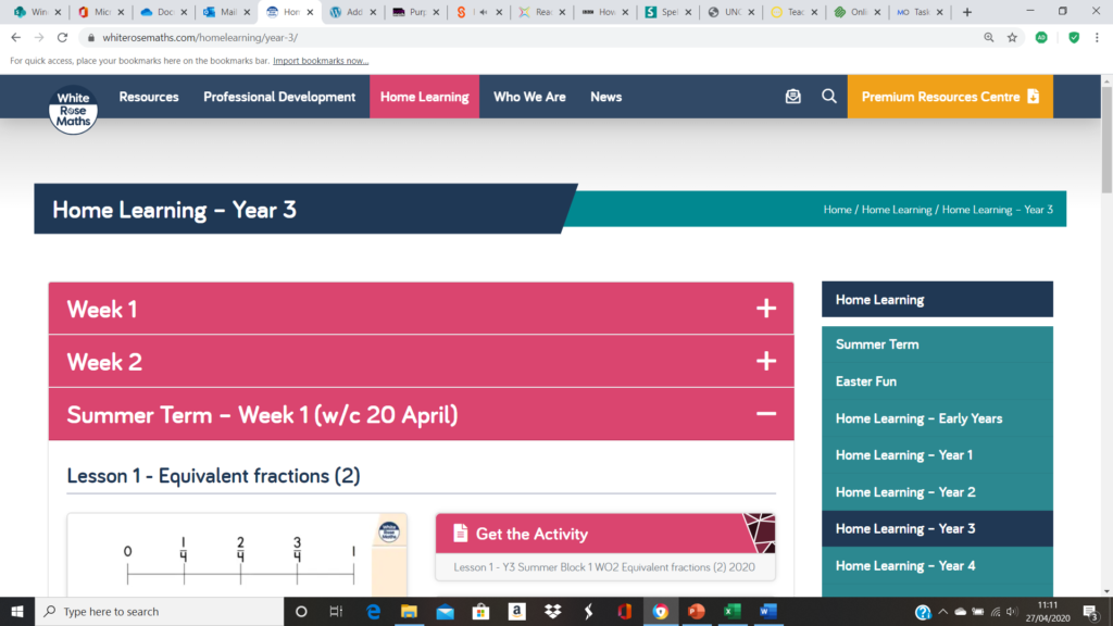 - Go to the White Rose Maths home learning web link: https://whiterosemaths.com/homelearning/year-3/
