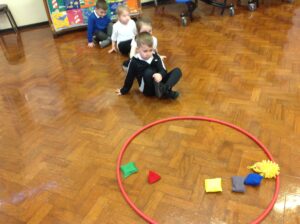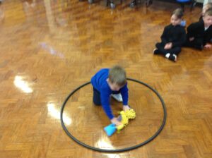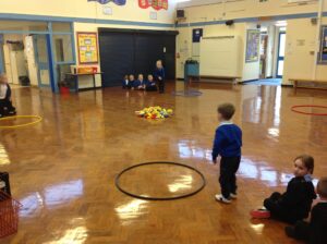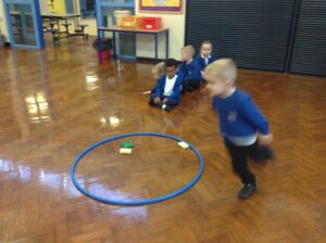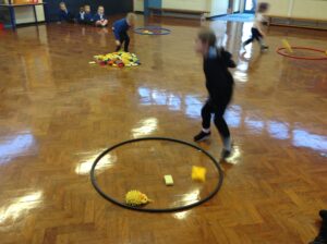 The children have enjoyed using maths in their PE lesson this week. They were shown a number card and then they needed to collect that amount of objects one at a time from the middle and place them in their teams hola-hoop.