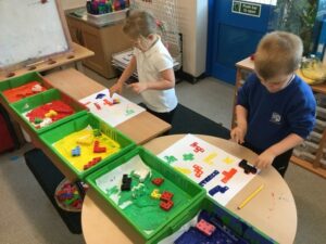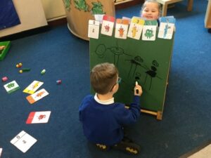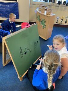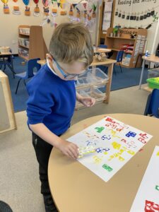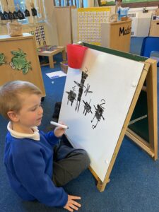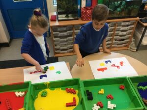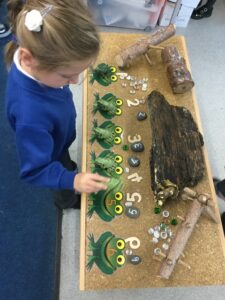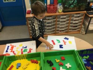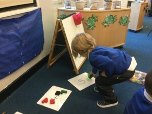 The children have had a fun week exploring number with the number blocks. They have explored different ways of making the same amount and matched to a numeral. They copied the stampolines and stamped lots of different ways of making the same amount. Super investigation and amazing counting! They have also enjoyed exploring all of the different maths activities in the indoor and outdoor environment.