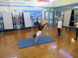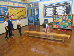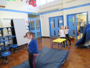 In Dance club we have been practising our jumps and gymnastic skills. The children worked hard during a circuit of different activities including jumping of a block, balancing on a beam and working on their rolls and cartwheels. The children worked very and and had a great time! Take a look at some photos of the children in action!