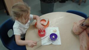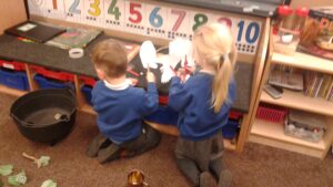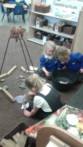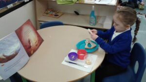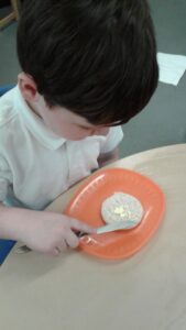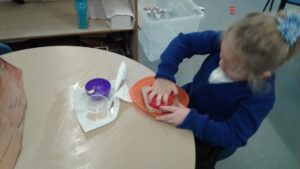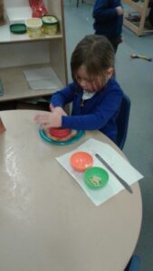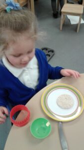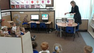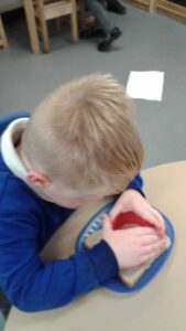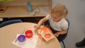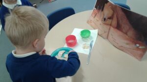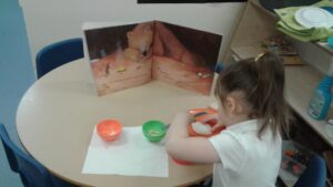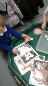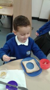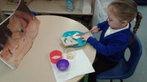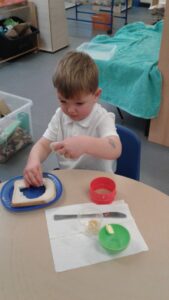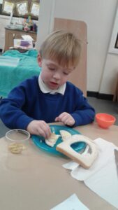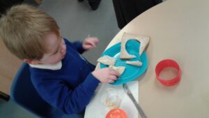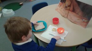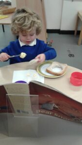 This week we have enjoyed the story, Bear Snores On by Karma Wilson and Jane Chapman. We learned that a bear has paws with claws and we made a bear claw snack by cutting bread into circles, buttering it, halving the bread and then placing some chip sticks along the edges. We made bear pictures on the computer, drew bears and painted bear pictures. We thoroughly enjoyed making some pop corn and we did some excellent role play as we reenacted the story of Bear Snores On.