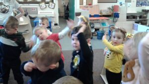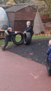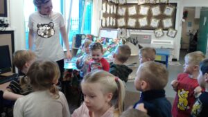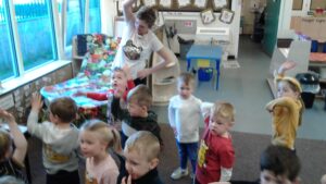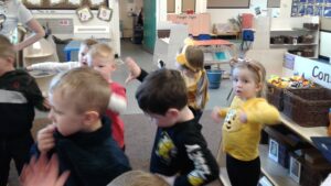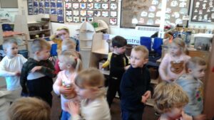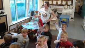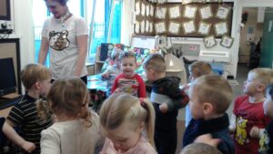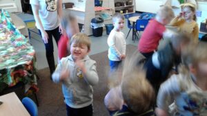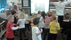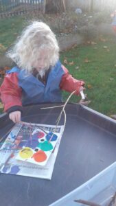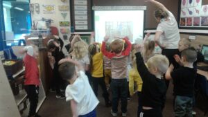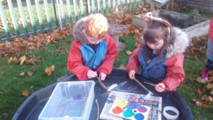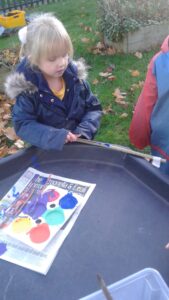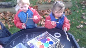 We started our Children in Need Day off by exercising to Joe Wicks. We then spent the day outside making special Pudsey sticks by painting colourful spots onto a stick. At home time, we tapped our sticks in time to some music.