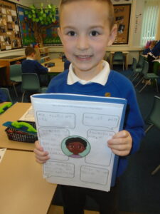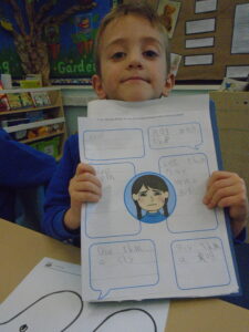 Then we looked at a little child who was being bullied. We talked about what we could do to help them and then wrote these ideas down.