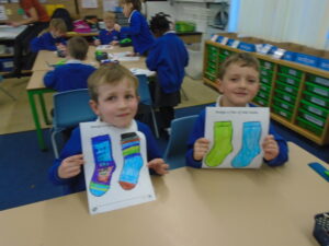 Today as part of antibullying week Owls and Robins took part in Odd Socks day. We discussed what we thought bullying is and how people can be bullied in different ways. We talked about what we should do if we are being bullied and agreed that everyone should feel safe and happy when at school and at home.
