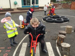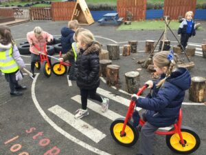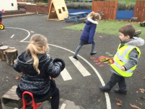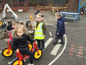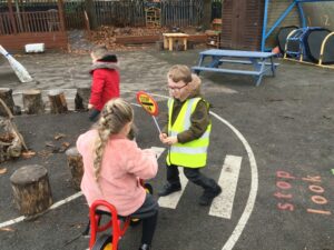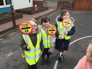 The children enjoyed a fun afternoon finding out how to cross the road safely. The took turns at pretending to be pedestrians, road users and the road crossing patrol (Lollipop person). Why not take a look at the video we have watched in school this week. Road Safety video
