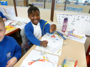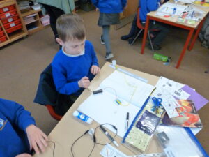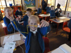 Bluebells have been learning more about electricity and circuits. They have tested different materials to see if they are conductors or insulators of electricity. Children made their circuits and tested different items such as rulers, pencils, paperclips and pencil sharpeners.