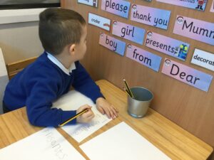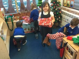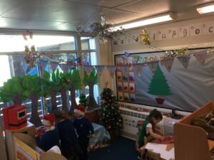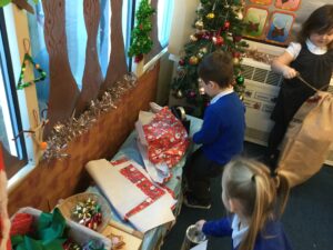 It’s beginning to look a lot like Christmas! We have decorated the tree, started opening our advent calendar tree, which follows the story of the nativity, and we have opened Santa’s Workshop. The workshop is very popular and Santa’s helpers and Elves have spent the week making and wrapping presents.