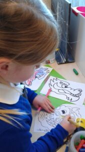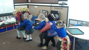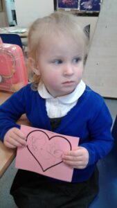 Another busy week in nursery! We made Valentine hearts for our families, learned about opticians and celebrated Chinese New Year. To celebrate Chinese New Year, we made a dragon head on Thursday and then performed a dragon dance today. We listened to the beat of a drum to determine the tempo of our movements while performing our dragon dance. We took turns at wearing the dragon head and tail. For snack, we had some Chinese noodles and prawn crackers.