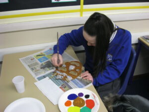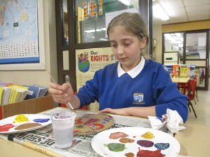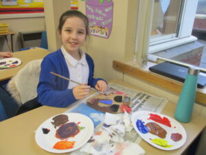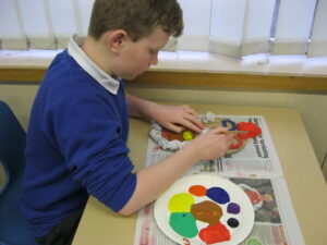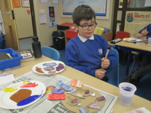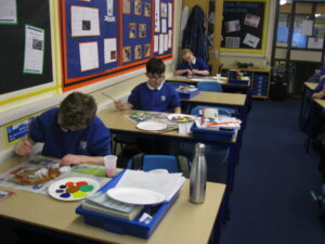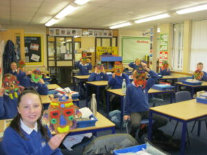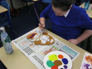 UKS2 this afternoon have been getting creative with the next stages of their Mayan masks. After a quick tutorial on how to create secondary colours from primary colours they got stuck in. The outcomes look great, we can’t wait to get them up on display to showcase their excellent work!