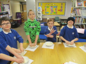 Last week in UKS2 we looked in more detail at the Mayan civilisation and what ingredients they used to use and the types of food they would make. Maize was a very important crop and it made up 80% of their diet. It was used to make tortilla wraps so both Year 5 and 6 thought we would have a go at baking some ourselves. Both children at home and in school were able to follow a recipe, measure out ingredients and create a dough ready for rolling. It is safe to say that children enjoyed getting their hands dirty! They then had a go at frying the wraps (with adult supervision) and were able to then enjoy them! We had lots of 5 star ratings of their bakes.