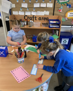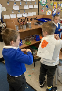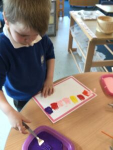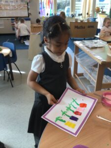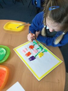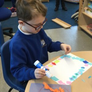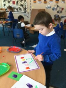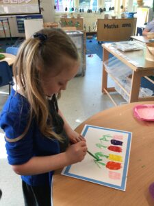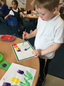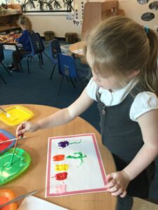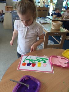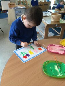 It has been a very creative week in the Dragonflies. One friend inspired the whole class to get busy making picture frames. They all hang proudly in our classroom. The children also created their own spring flower artwork. They used forks to print paint to create beautiful spring flowers. The children continue to amaze everyone with all of the super things they make on the craft table.