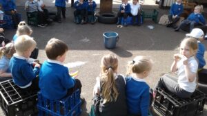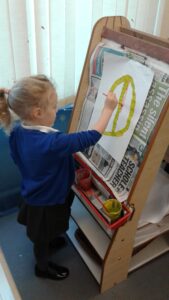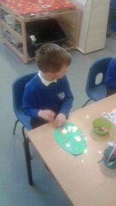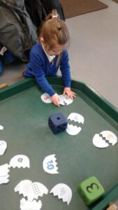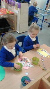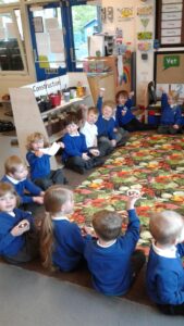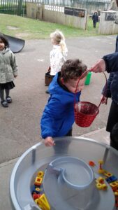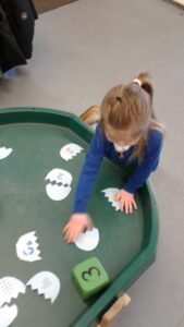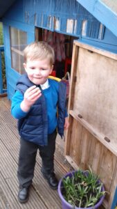 This week, we have focused on the Easter Story and why Easter eggs are a tradition at Easter. We made some Easter nests using Weetabix and chocolate, which we enjoyed eating during snack time today. We also listened to the story, We’re Going on an Egg Hunt. We were extremely excited to discover that the Easter bunny visited nursery today and hid a chocolate egg outside for all of us! We had our own egg hunt and as you can imagine, we thoroughly enjoyed searching for the eggs and eating them afterwards! We also planted some sunflower seedlings outsideĀ that we had grown indoors.