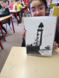 Finally, the classes have all been experimenting with charcoal. This has helped us explore the different levels of shading that we can apply to a piece of art.