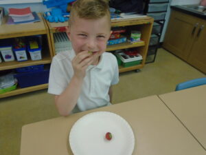 The last part of our topic was to evaluate our fruit salad and we talked about how we could change or improve them next time.