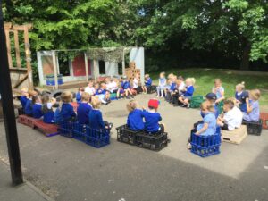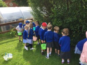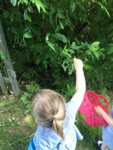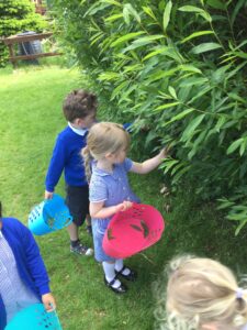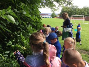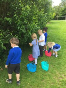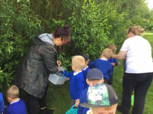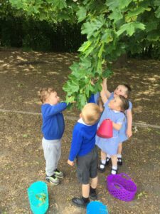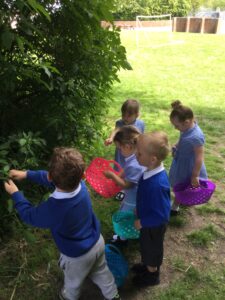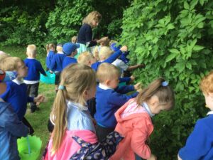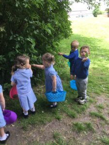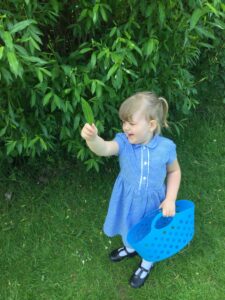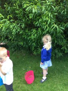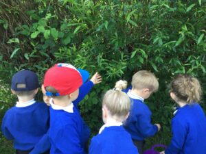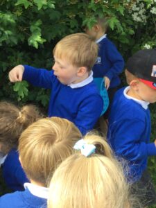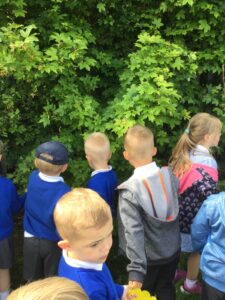 We have made the most of the glorious weather and spent a lot of time outdoors. During our Friday outdoor session we explored our school grounds and identified some trees. We looked very closely at the shape and the size of leaves to help us and we successfully identified, willow, elder and sycamore tress. We carefully picked some of the leaves to use for an activity next week.