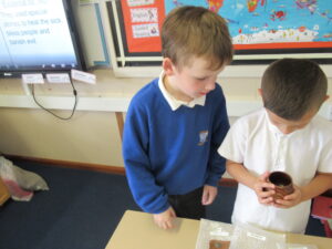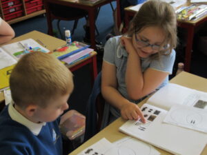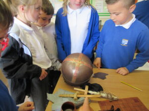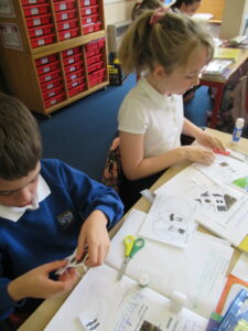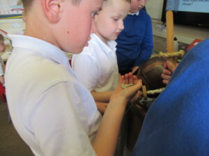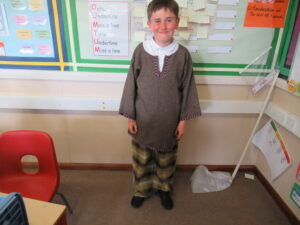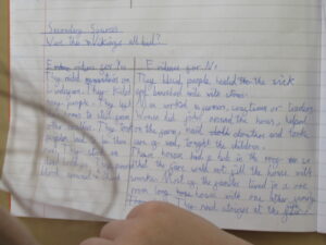 Each class studied sources of evidence – both primary and secondary – to help them come to a conclusion. The children examined Viking artefacts, such as a bone needle, a wooden cup and gaming pieces. We decided that this showed they weren’t all bad, as they must have used intelligence and skill to make these things. Each class also sorted pictures of primary sources and read extracts from sources such as the Anglo-Saxon Chronicle – a lot of which painted the Vikings in a very negative light!
