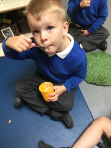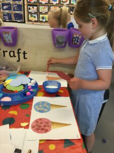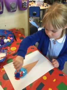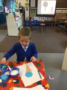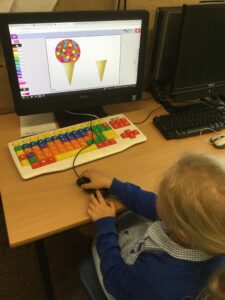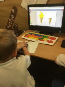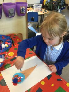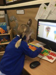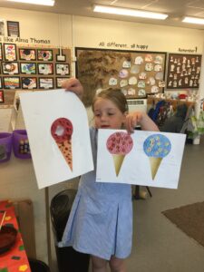 This week we focused on the story, Vanilla Loves Vanilla and tasted the vanilla and strawberry ice cream that we made last week. It was delicious! We have continued designing and making computer and collage ice creams, which look almost good enough to eat!