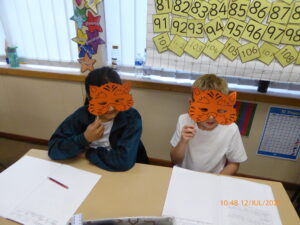 Today the Bees watched a video and then discussed the life of a tiger in a cage. They thought of open questions to ask the tiger. They took turns to be the tiger so they could answer the questions.