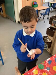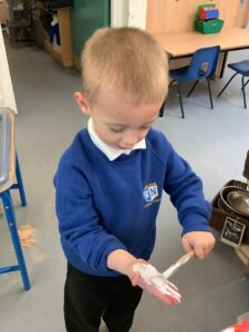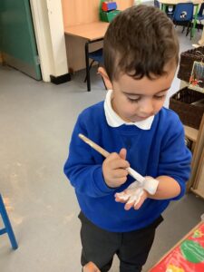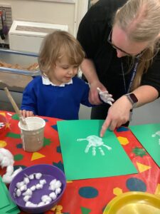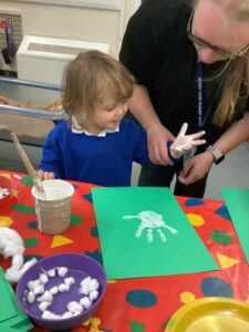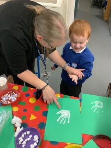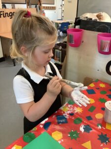 We have had another busy week in nursery! We designed some beautiful Christmas cards which can be made into actual Christmas cards if parents chose to, via the Cauliflower Cards company. During our phonics sessions this week we have enjoyed spending time in the hall listening to instructions while singing and dancing. Some of the children created some independent self-portraits, extending their learning from previous weeks, which was wonderful to see. While in the maths area, the children have been comparing size and producing repeating patterns using Compare Bears.