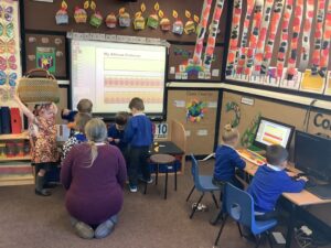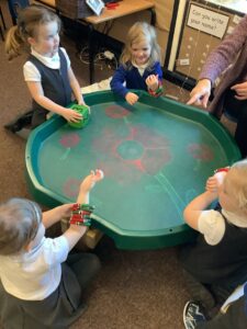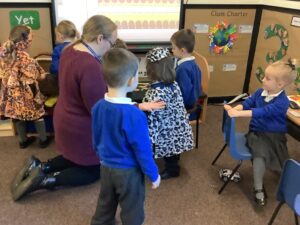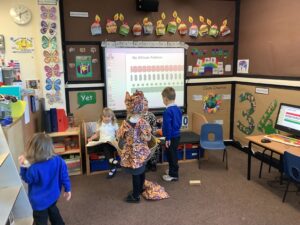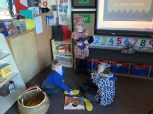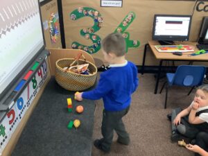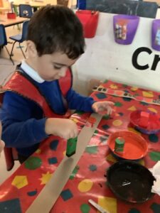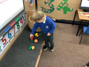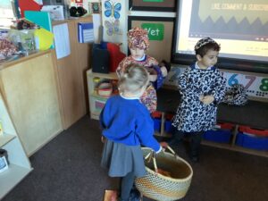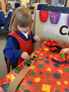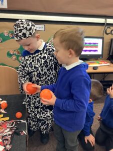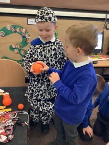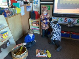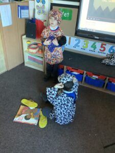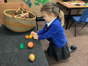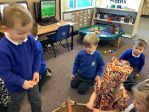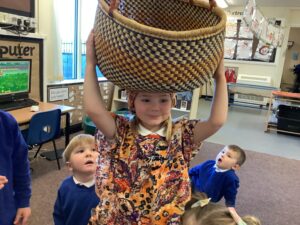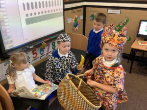This week, we have focused on the story of Baby Goes to Market. The story incorporates early mathematical skills as well as giving a little insight into Nigerian culture. The children thoroughly enjoyed dressing up in traditional African clothing and acting out the story. We produced some beautiful African patterns by using 3-D shapes to print some repeating patterns. We also produced some African patterns by using a PurpleMash program on the computer. During our maths sessions this week we voted for our favourite fruit by placing a Duplo brick next to the fruit that we liked the best. We talked about which Duplo towers were the tallest and shortest and how that linked to the most popular and the least popular fruit.