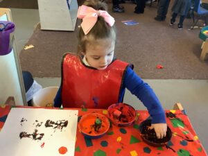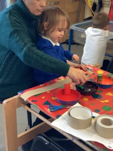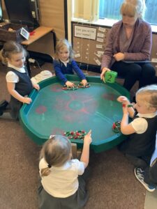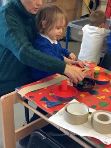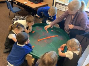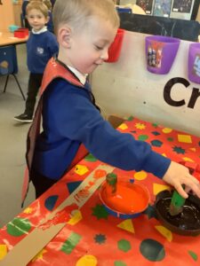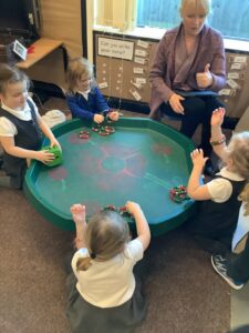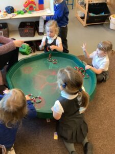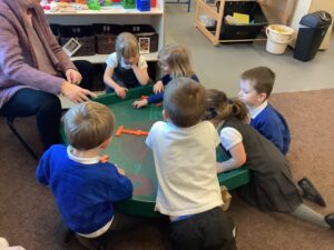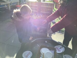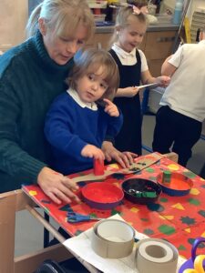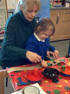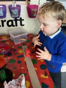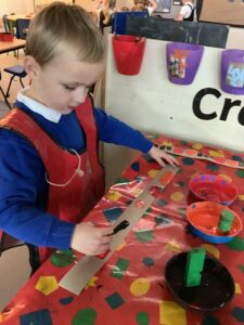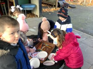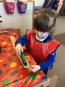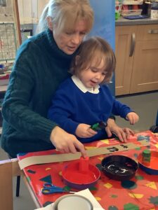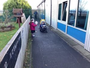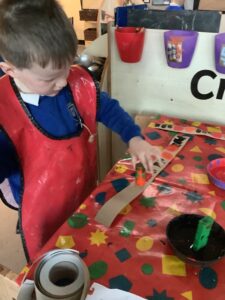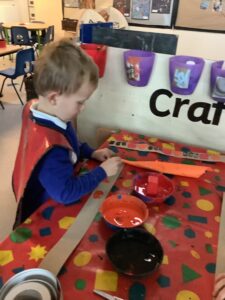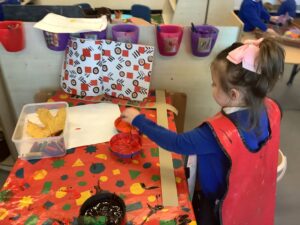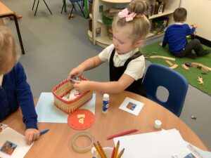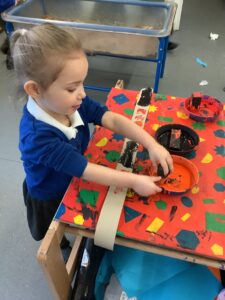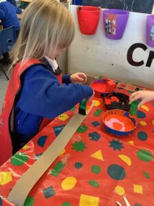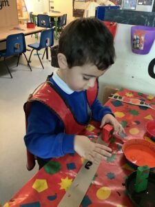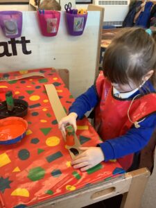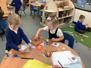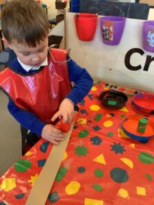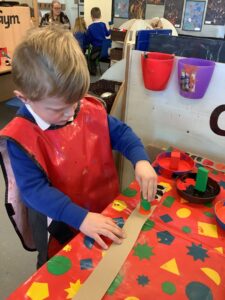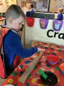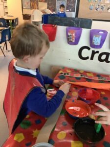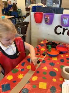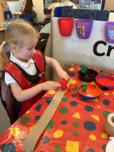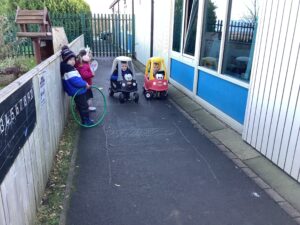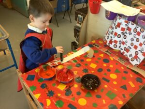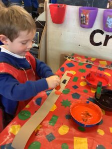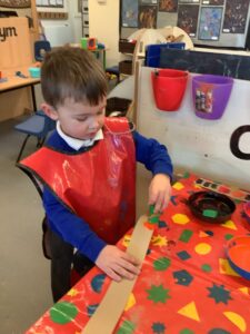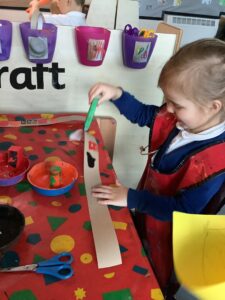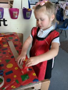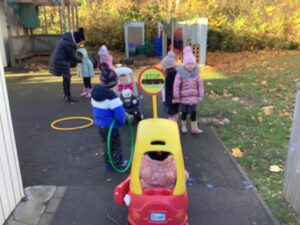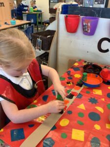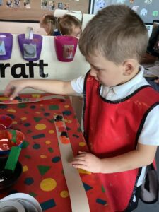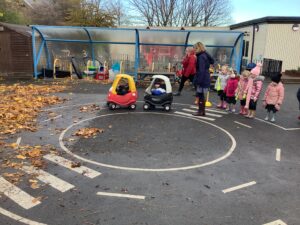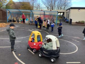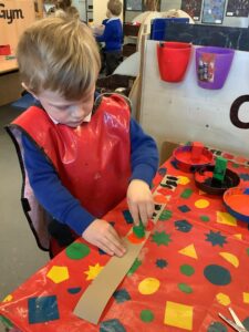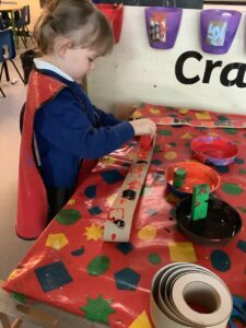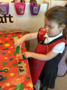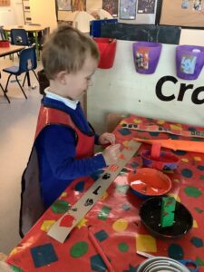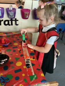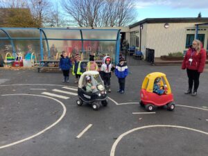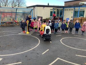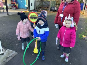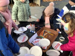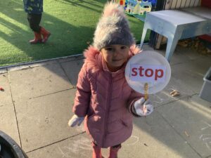 We have participated in some road safety activities. While outdoors, we used reception’s yard to practice crossing the road safely. We had great fun taking turns to be a lollipop person and pretending to be traffic! We also made our own stop signs.