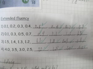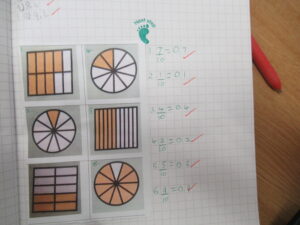 Today in Tulips, the children investigated the equivalence between fractions and decimals. We learned that there are fraction and decimal equivalents for tenths. The children used dienes equipment to show this before moving on to written equivalence in their maths books. The children worked super hard and all showed a great understanding!