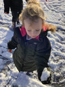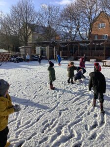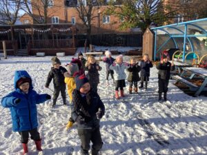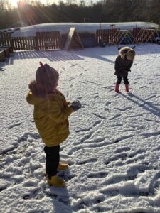 On Thursday, we enjoyed playing in the snow and even made a mini snowman. We discussed what snow looked and felt like and what would happen when the sun started to shine. We seen the start of the snow melting and tried to catch as much as we could before we realised that we were making it melt faster. We can’t wait for more Christmas fun next week!