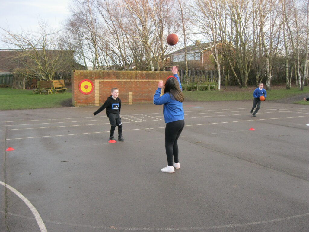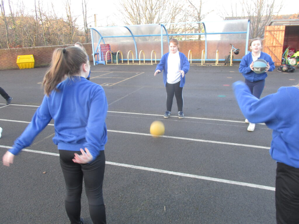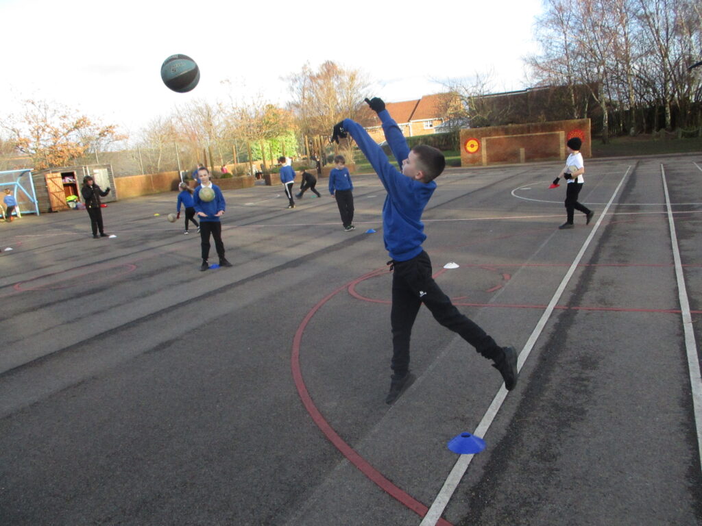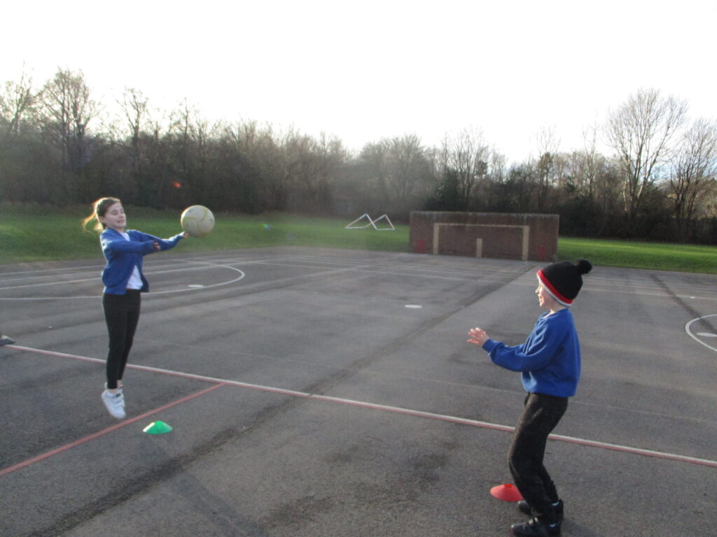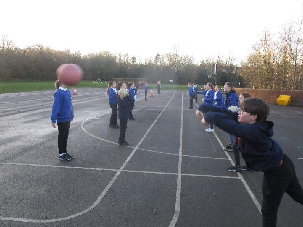This half term, in PE, children in year 5 and 6 have been developing their skills in netball. The children begun by learning a range of different passes- chest pass, bounce pass and overhead pass and also looking at the correct way to stop and pivot in netball. When they had developed their passing, we then started to look at incorporating a defender. The last couple of weeks children have ended the lesson with a mini game, where they have learnt the different positions and roles in a team. At the end of the term the children will have an in class mini netball competition in teams.
