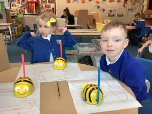 This half term, Reception have been exploring the Bee-bots and the different ways that they can move.