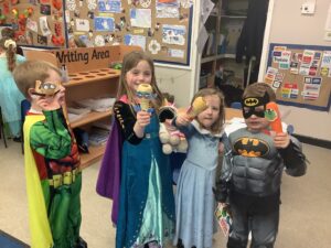 The children had brilliant costumes of many great characters from story books. They also enjoyed activities such as book swaps, treasure hunts and decorating their classrooms with ‘booky’ themes!