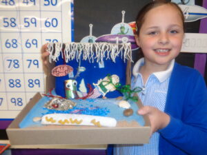 We have had such an exciting week in Nightingales. As part of our research about The Great Barrier Reef the children invited their parents into school to make a diorama depicting a coral reef of their own.