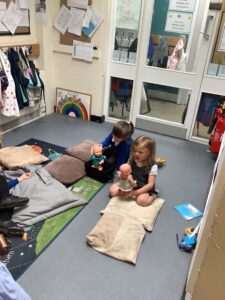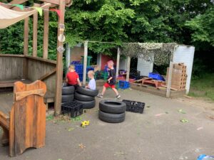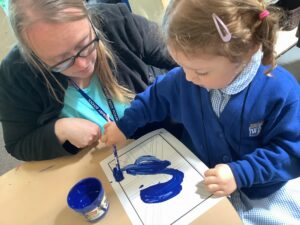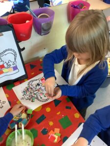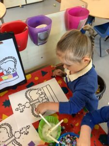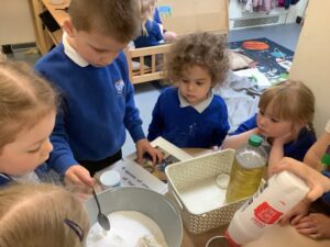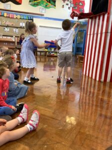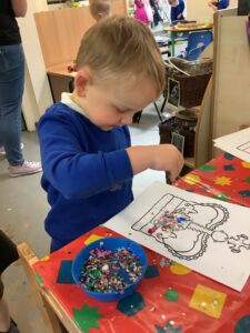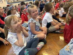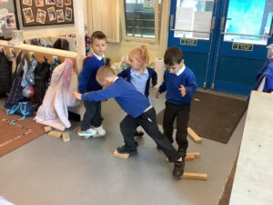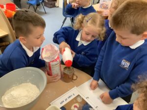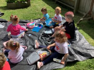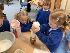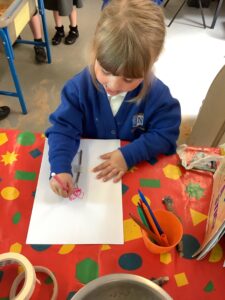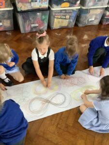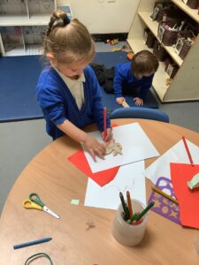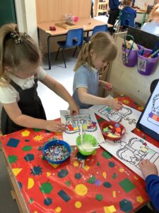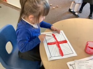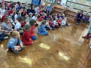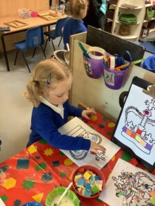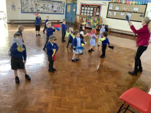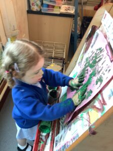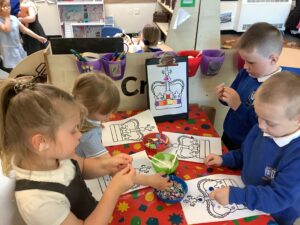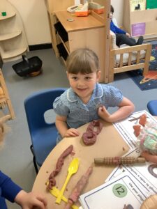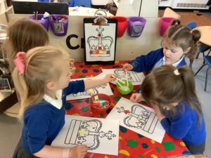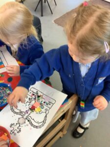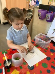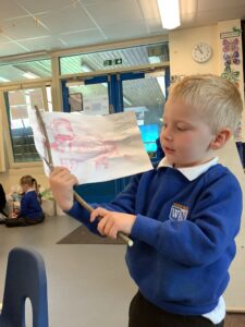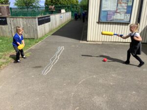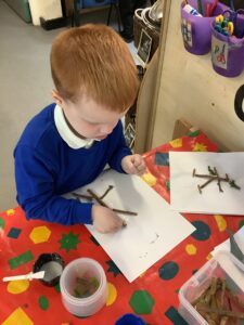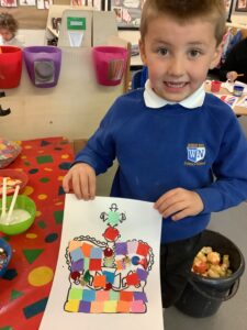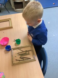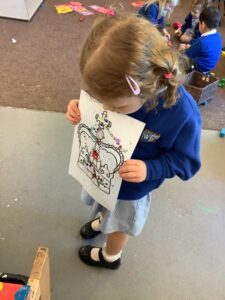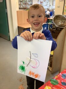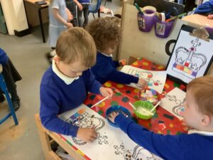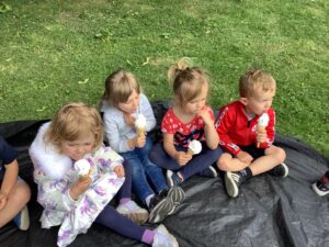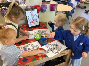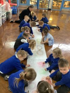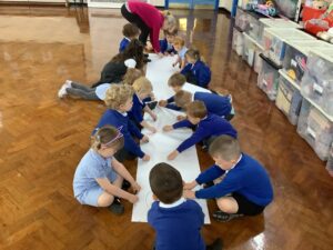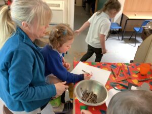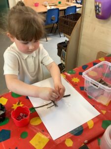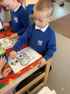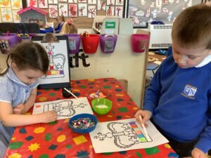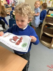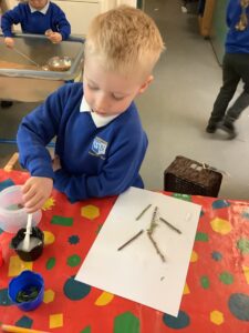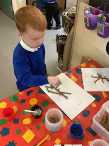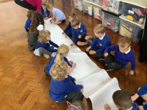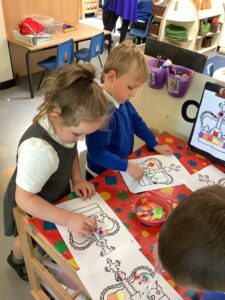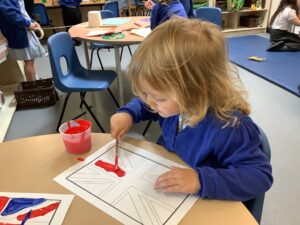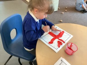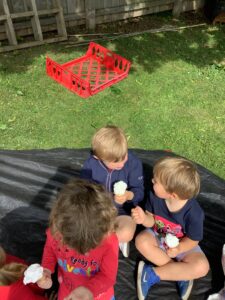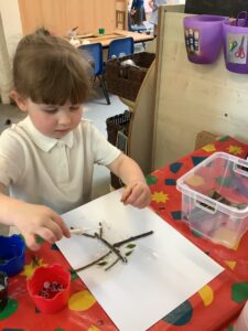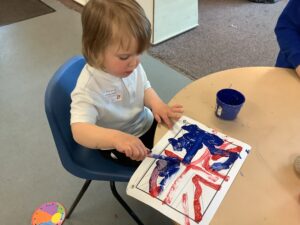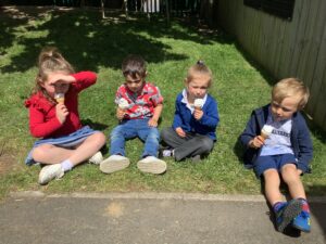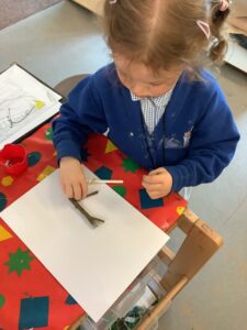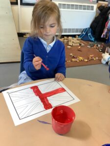We have had another super busy week! We finished our Stick Man artwork and computer pictures as well as our usual tasks like, making play dough and participating in Squiggle While You Wiggle. We used our play dough to form some numbers as well as making Stick Man and his family tree. To commemorate the Queen’s Jubilee, we all made some fabulous crowns to wear and parade in front of the whole school. We also painted Union Jack flags and used real sticks as the mast/handle which we obtained during a stick hunt. We discussed the part in the Stick Man story when Stick Man says, “I’m not a mast for a silly old flag!” and acted out scenes from the story with our sticks. We all thoroughly enjoyed eating an ice cream from the visiting ice cream van and the children who stayed for lunch ate their food outside picnic style! A great day all round!