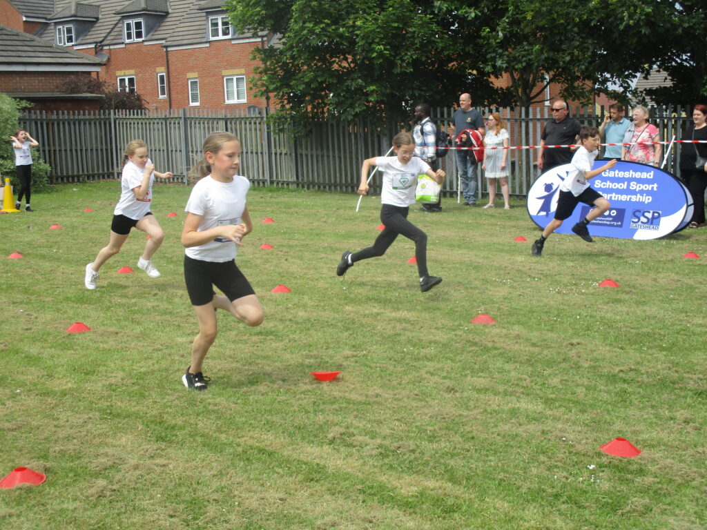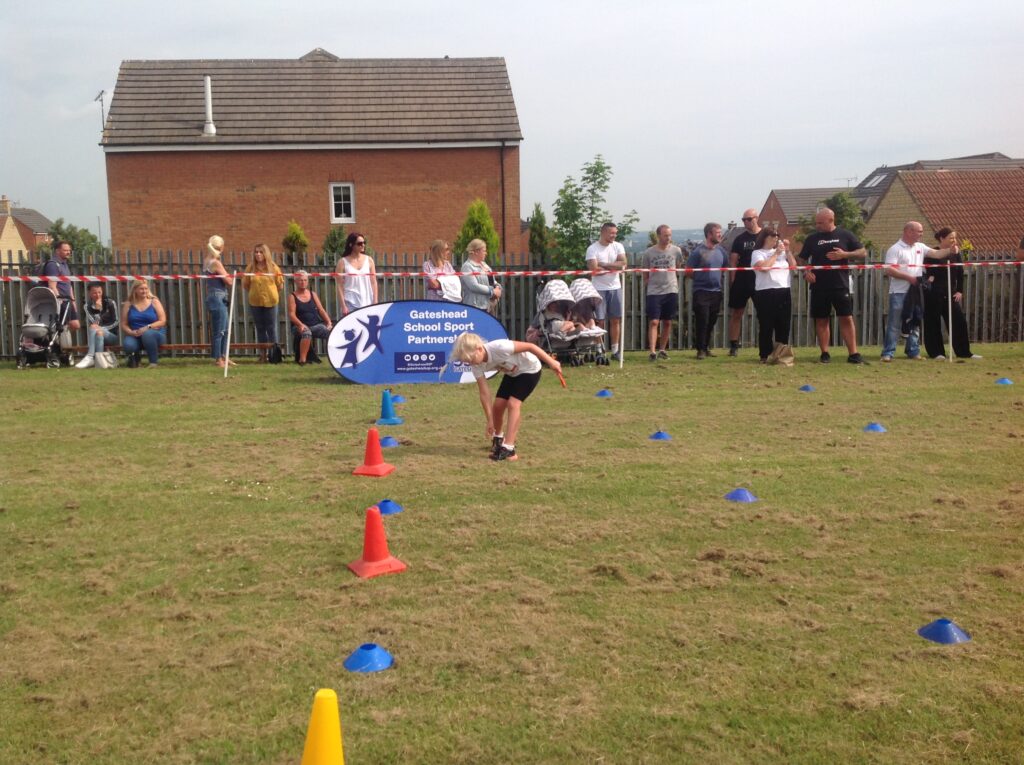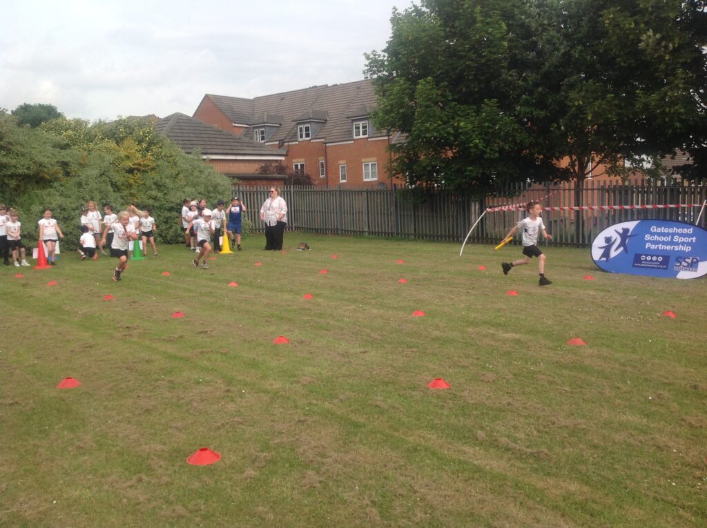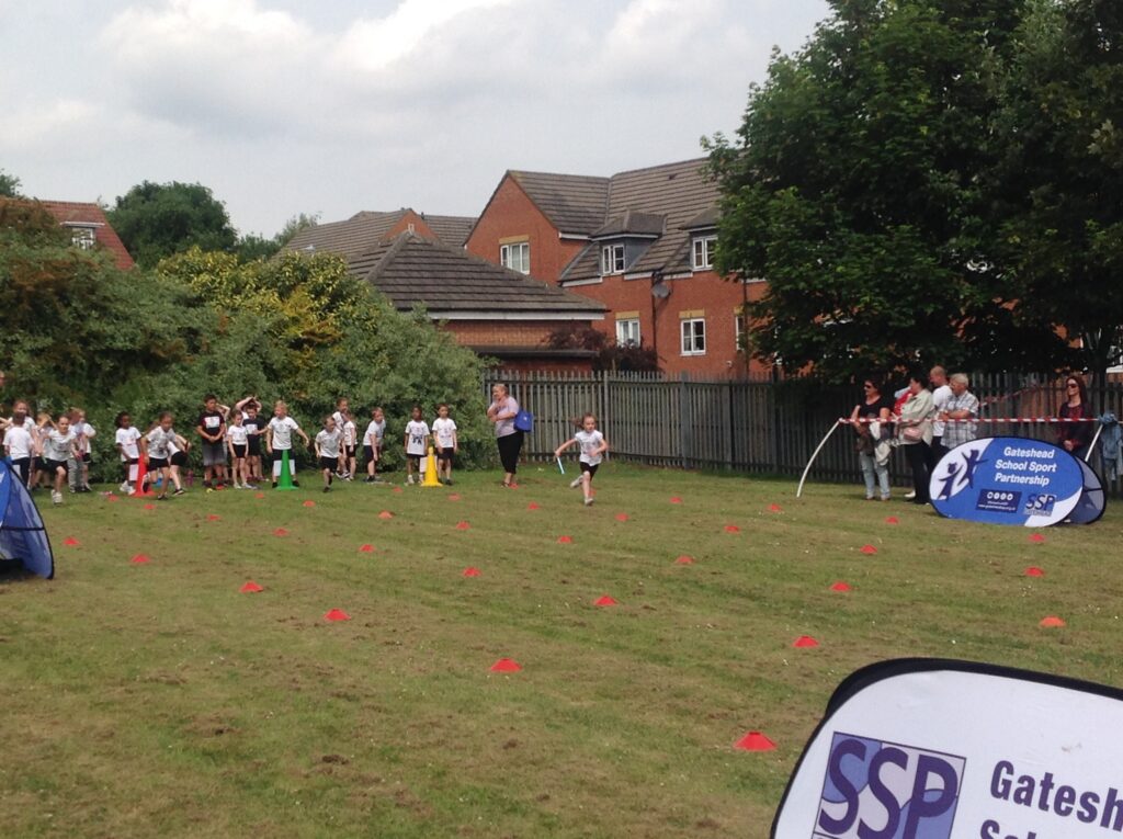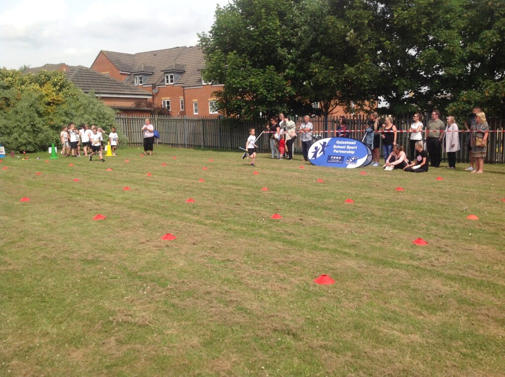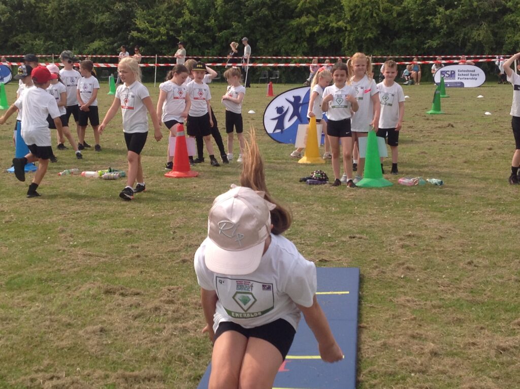 On Friday, children in KS1 and KS2 had a fantastic day taking part in their sports day. With some help from Gateshead School Sport Partnership, the children competed in 6 different events. The events were split into scored and non-scored events and the children won points for their house teams. Teachers also nominated a boy and a girl per class for showing great sporting attitude and these children were given a special medal and 10 extra points! The competition was close, but Emeralds managed to claim the winning spot. It was a brilliant day and children and adults all had a great time.