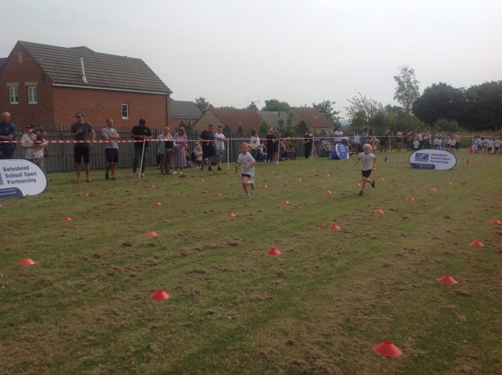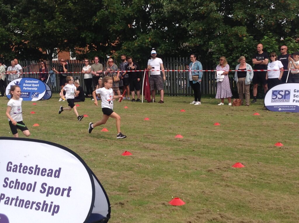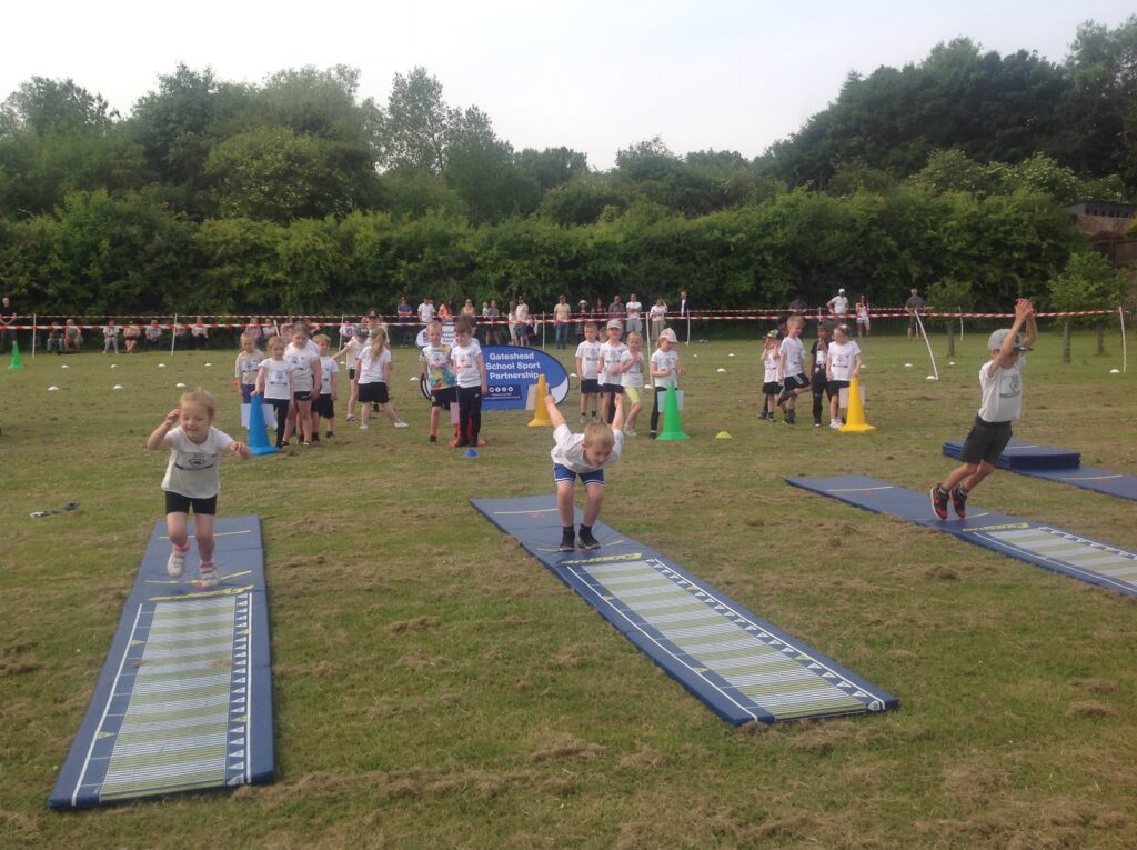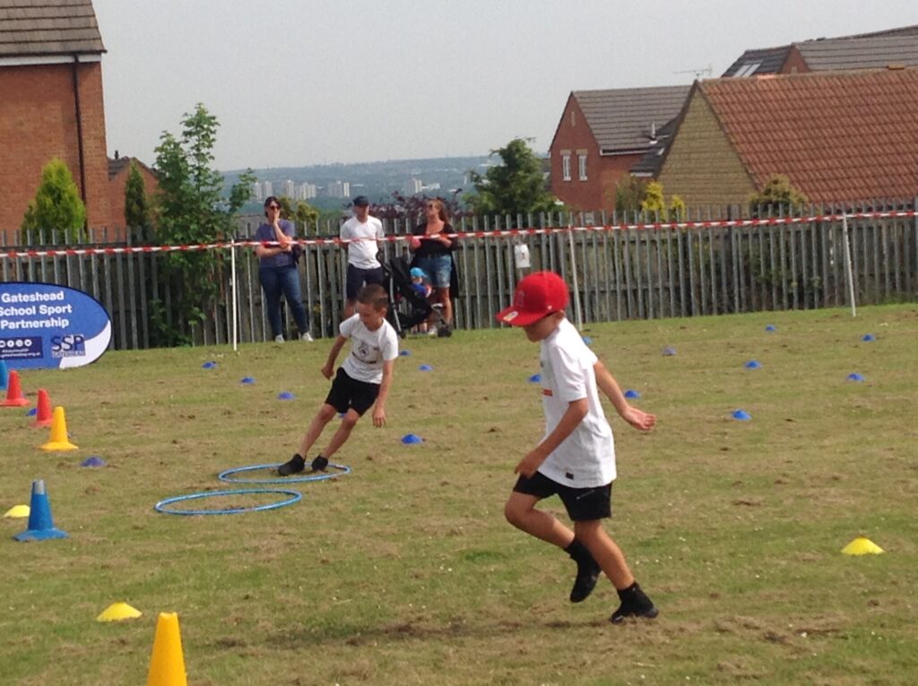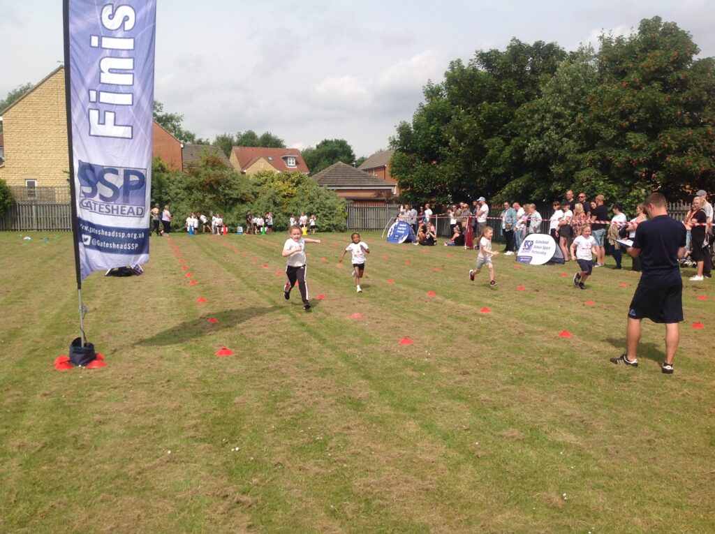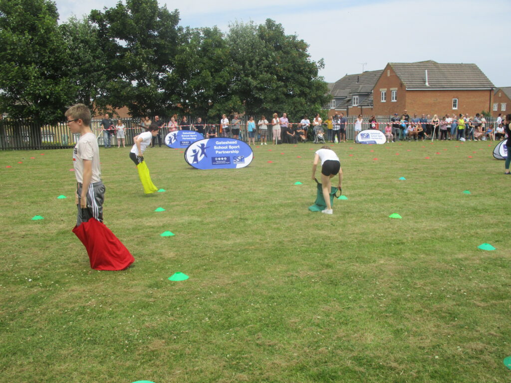 On Friday, children in KS1 and KS2 had a fantastic day taking part in their sports day. With some help from Gateshead School Sport Partnership, the children competed in 6 different events. The events were split into scored and non-scored events and the children won points for their house teams. Teachers also nominated a boy and a girl per class for showing great sporting attitude and these children were given a special medal and 10 extra points! The competition was close, but Emeralds managed to claim the winning spot. It was a brilliant day and children and adults all had a great time.