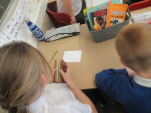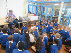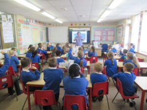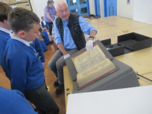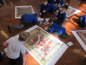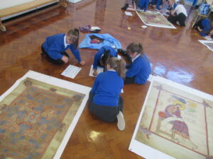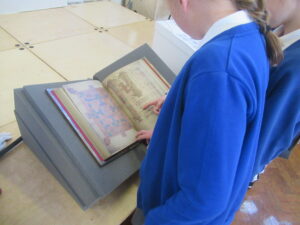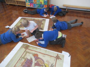 This morning, the children in year 4 had a visit from Reverend Danie and Reverend Ken. The children were told the story of Saint Cuthbert. They were lucky enough to see a special replica copy of the Lindisfarne Gospels. This copy is so important that Reverend Danie and Reverend Ken needed to wear special gloves to protect the front cover. The children learned about the life of Cuthbert and how he was made a saint. Then, they learned why the monks at Lindisfarne decided to write the special Lindisfarne Gospels. Reverend Danie then explained the journey taken by monks to protect Saint Cuthbert’s body from Viking invaders.